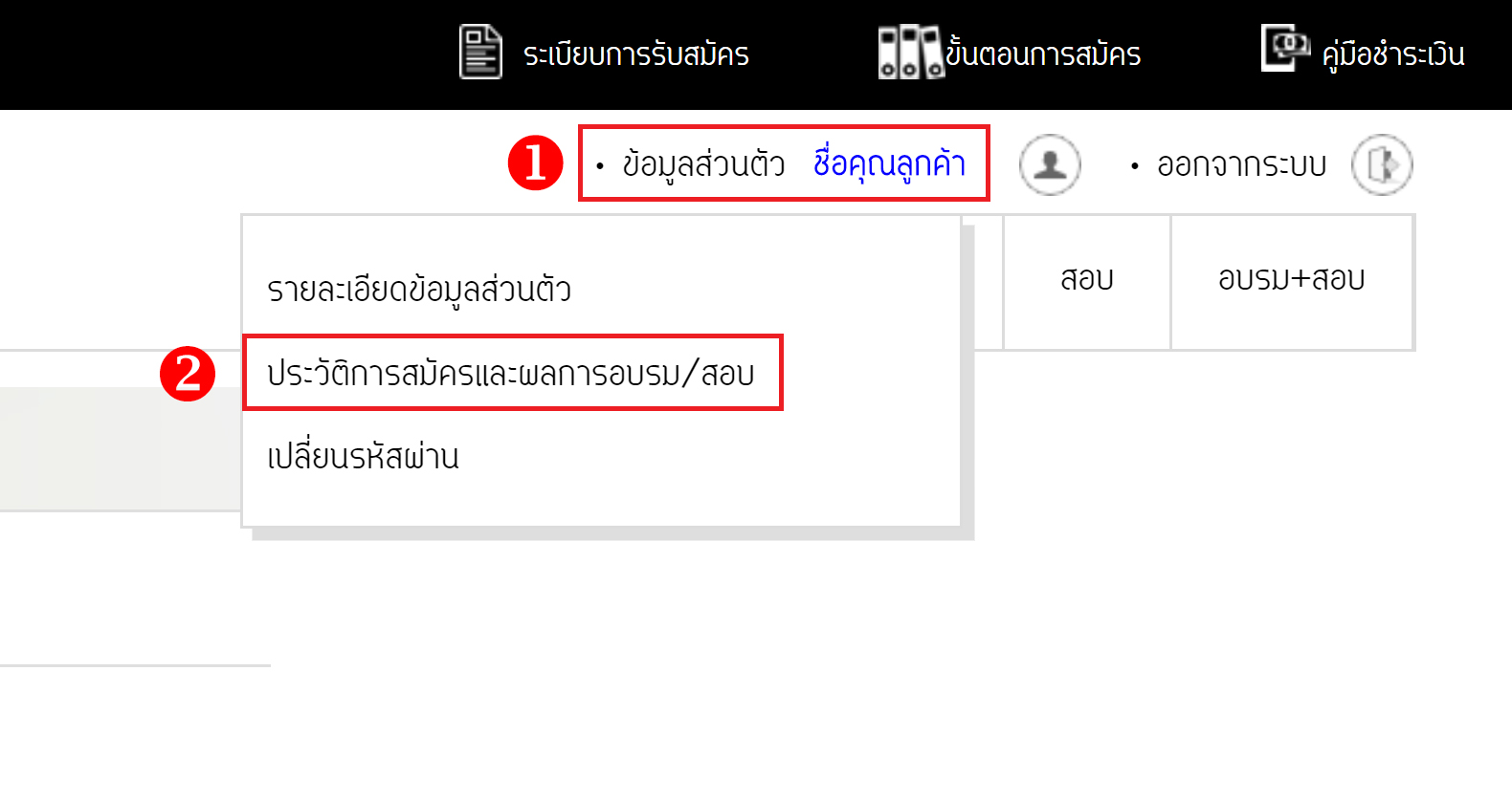| Q : ลืมวันและเวลาอบรมที่สมัครไว้ ต้องทำอย่างไร ? ท่านสามารถตรวจสอบวันและเวลาการอบรมของท่านได้ด้วยตนเอง ดังนี้ ตรวจสอบอีเมลยืนยันการลงทะเบียนที่ ATI ส่งให้ท่าน ท่านสามารถตรวจสอบวันและเวลาอบรมได้ด้วยตนเองโดย: เข้าสู่ระบบที่ https://register.ati-asco.org แล้วคลิกที่ชื่อผู้ใช้ จากนั้นเลือกเมนู “ประวัติการสมัครและ ผลการอบรม/สอบ” ![]() |